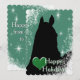 A green starry background design with the black silhouette of a horse and a green heart. Customise with your personal holiday greeting, message and signature. The perfect holiday card for your horse lover!