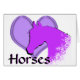 A silhouette of a horse's head on purple coloured heart with the word "Horses". The perfect card for your horse lover!