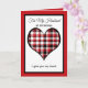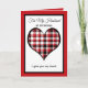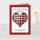 This heartfelt husband Christmas card features a red, white and black plaid heart as the focal point edged in black and red. The card reads, "For My Husband at Christmas." Below the heart are the words, "I give you my heart ..." Inside is a very sentimental Christmas verse about giving your husband your heart. Copyright Kathy Henis