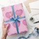 Pink heart shaped ice cream stick seamless pattern on pink background.