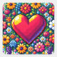 cute red heart in yellow, red and white flowers 3-d looking pixel art. 8-bit needlepoint looking whimsical art with flowers.