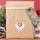 Sticker in heart shape with red heart, customise with your own text - for example: made with love, you are going to be grandparents, I love you, I give you my heart, Ann & Ben, name, etc.