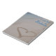 Pretty beach theme personalised notepad with a heart drawn in the sand by tropical blue ocean.. Cute personalised notes with a customised name template and text above the name reads "a note from."