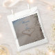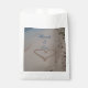 Romantic wedding favour gift bags with a pretty heart drawn in the sand at a tropical beach. Personalise with the names of the couple. Shown here on a white bag. Other colour options are available.