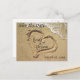 Beach Wedding save the date postcards with a heart drawn in the sand, and the names of the bride and groom inside the heart. Easy to use template - just enter the names of the Bride & Groom, along with the wedding date in the space provided.