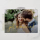 This whimsical and modern elopement or marriage announcement postcard features two of your favourite wedding photos, with trendy gold foil rustic handwritten script and a small, stylish heart and says "just married." The back contains a second photo with a translucent overlay, and more of your wedding details and information in black text. A simple and elegant look that is the perfect way to let family and friends know you tied the knot!