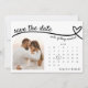 Cute wedding save the date card with photo, heart line and calendar. Personalise it with a photo of the bride and groom and their names. Use the editor to move the heart to your wedding date.