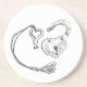 Pen and ink drawing of a heart-shaped lock and key on a sandstone coaster. Artwork: Pen and ink on paper. Copyright: Dominic A. White. All rights reserved.