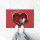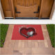 This heart-themed doormat features a striking red background, adding a touch of elegance and charm to any entryway. Its design not only enhances the esthetic appeal of your home but also serves a practical purpose by keeping dirt and debris at bay. Ideal for welcoming guests, this doormat combines functionality with a warm, inviting message.