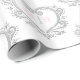 Silver effect heart art with a pink initial monogram on a white gift wrapping paper. Heart wreath design encasing your own couples monogram. Other colours and matching items are available. © Original decorative heart graphics and design by Sarah Trett for www.mylittleeden.com on Zazzle.