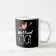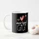 Gigi coffee mug design featuring a heart font with a pink heart & arrow set on a black background. Perfect grandparents day or mothers day gift. Visit our shop to view this mug in a large assortment of grandmother names.