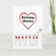 Netball greeting card template with love heart and stick figures. Custom happy birthday card for netball player or fan.