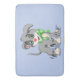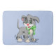 Cute grey puppy cartoon with a heart shaped nose in pink, green eyes and a blue collar ribbon.