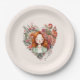 Heart of Blooms - Woman Framed in Floral Heart Paper Plate