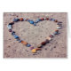 Stones found during a walk along the beach say, "I love you." This card is blank inside for you to write your own sentiment.