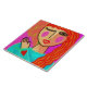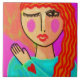 My colorful abstract digital painting of a red haired woman with her heart on her sleeve printed on ceramic tile
