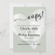 This distinctive card could be the perfect way to announce that your wedding date has been changed, if you're looking for a humourous delivery. The background has been covered in a pretty sage green that can be changed to any colour you prefer. Overlaying that is a partially-opaque heart with a vintage painted watercolor white surface that enables your background colour to show through. I've used a distinctive modern font with swirling accents to create a graphic depicting the word "oops!" which is positioned at the top, quite large. Use template fields to add your personal details and update the placeholder message as needed. I'm happy to help with customisation if you need assistance. // 57 //