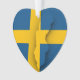 Show your love for the cold, snowy and frosty Sweden with a heart shaped ornament (3"l x 2.8"w x .187"d) with the Swedish flag and an outline of Sweden on one side and a snowflake on the other.