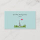 Professional business cards with a whimsical drawing of the Eiffel Tower in the background surrounded by green trees. A pink heart adds a girlish flair.