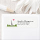 Address labels with a whimsical drawing of the Eiffel Tower in the background surrounded by green trees. A pink watercolor heart floating in the air adds a girly flair.