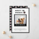 Pet loss announcement in a simple black and white design you can personalise with a photo of your precious pet. Rest in peace is written with bold black letters next to a cute paw print adorned with a red heart. Add your pet's name and years living along with a short text about their life with you. The back features a cute matching paw print pattern.