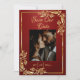 This romantic Save the Date Card features a placeholder for a photo on a romantic ruby red background on the front with an elegant gold frame. The back has room for additional information and heart monogram for couple's initials. Designed to coordinate with the "Doves, Heart & Gold Leaves" Wedding Collection. To change details, click «Personalise». To move the text or change the text size, font, or colour click «Click to customise further»