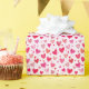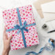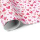 This gift wrap features a pattern of red and pink hearts against a light pink background.