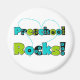 Colourful text in lime green, black, and aqua reads "Preschool Rocks!" on preschool teacher and preschool student T-shirts, buttons, tote bags, stickers, cards, and more!