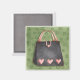 Black purse with pink hearts magnet. Part of the Ladylike collection.