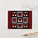 A post card with a quilt style pattern. The design has red hearts on a white background, and red roses on a black and white striped background.