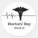 This sticker is great to share Doctors' Day, which occurs annually on March 20. This can be worn on clothing, or put on letters, etc. But, if you want to use this for a different purpose, you can change the text on this sticker, or remove the text so the sticker is blank and this can be used as a Name Tag for medical events, medical school class reunions, etc. So, Instead of "Doctors' Day" Put the Name of The School or "Class of XXX" . Then Below Remove the date so a Name can be written in with Sharpie Pen. Or if you want lots of room, just delete all the text so there's room for writing a name below the graphics. Designed by Sheila Cicchi, Brownielocks.com. All Rights Reserved. NOTE: Due to the style, you can only buy this on ROUND stickers.