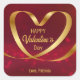 Heart Ribbon Gold Happy Valentine's Day Red Square Sticker