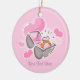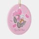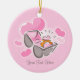 Cute engagement ornament featuring a heart shaped engagement ring in it's box and pretty pink hearts. Add your own text. Fun way to propose! T-shirts, postage stamps, invitations, thank you notes, save the date announcements and also available! PinkInkArt original!