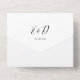 All in one black and white wedding invitation featuring elegant hearts script typography and monogram initials. The invitation includes a perforated RSVP card with your wedding website QR code and details. Designed by Thisisnotme©
