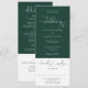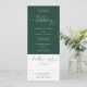 An all-in-one wedding invitation featuring elegant heart script typography on an emerald green background. The invitation includes an RSVP card that can be cut off and guest information details. Designed by Thisisnotme©