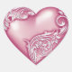 Beautiful heart sticker with silvery white flourish scroll on a mauve coloured heart, perfect for adorning scrapbook pages or used as an envelope seal.