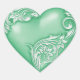 Heart Scroll Jade Green w White Sticker