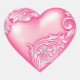 Beautiful heart sticker with silvery white flourish scroll on a light magenta / hot pink coloured heart, perfect for adorning scrapbook pages or used as an envelope seal.