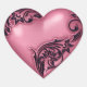 Beautiful heart sticker with silvery white flourish scroll on a pink heart, perfect for adorning scrapbook pages or used as an envelope seal.