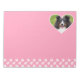 Personalizable heart shape pet photo template in pink and white colour scheme. Replace the sample photo with your own. On the bottom there are some white dog paw prints. The background colour is pink.