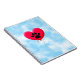 Heart shaped balloon with dog paw print. Custom notebooks. Blue sky background. Cartoon style design. All digital drawing.