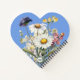 Black horse, spiral bound, little notebook shaped like a heart. The design on the front is a beautiful black horse standing among wildflowers. The background is bright blue and her name can be printed along the edge using the text template. Wildflowers also cover the back of this notebook. This cute personalised journal makes a great gift to a horse-loving teen or young child. Choose lined or unlined, blank pages. The eight inch size is just right for taking along on trips and outings to capture thoughts and insights only young people have.