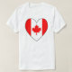 T-shirt features a heart-shaped image of the Flag of Canada shows on the front. Heart-shaped Canadian Flag image on the back. Fun to wear to family reunions, travel groups, and clubs. Cool for holidays like Valentine's Day or Canada Day.
