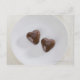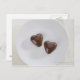 Close-up of two heart shaped chocolate candies in a plate. Copyright: Glowimages