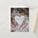 A heart-shaped blank card rests on a soft bed of white snow, surrounded by delicate greenery and twinkling lights. Two candy canes, red and white striped, add a festive touch. Tiny red berries dot the scene, enhancing the holiday spirit. This cozy setting captures the warmth of winter celebration, perfect for sharing heartfelt messages.