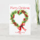 Heart-Shaped Christmas Wreath with Red Bow Holiday Card