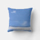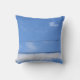 This striped throw pillow was inspired by white clouds and black telephone wires against a deep blue summertime sky. A heart-shaped cloud floats in the blue sky and a hint of the moon can be seen near it.