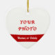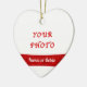 Heart Shaped Custom Photo Ornament with Your Name or Special Saying or Date. ADD your Photo and Name. Under the "Personalise it" section, Click the Tiny blue word "Change" and Click "Upload New Images" and or "Select New Images to Upload" Click "OK". Type YOUR NAME in the Text Box too. Use a photo with a good amount of extra scenery or space around the subject because the Heart Shaped Ornament will cut off the extra. Choose a Different Ornament Shape in the "Style Options" area.