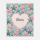 This personalised fleece blanket features a pattern of starfish arranged in a heart-shaped frame, with your little one's name inside, in soft, green and pink colours.