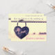A cute and casual wedding invitation. A pretty purple and pink heart shaped padlock, old and weathered grunge style, all faded and scratched. The metal lock says love, in pretty pink lettering. Attached to a rope. A yellow cream coloured background. The photograph has a nostalgic quality. Personalise / customise with all your wedding details.